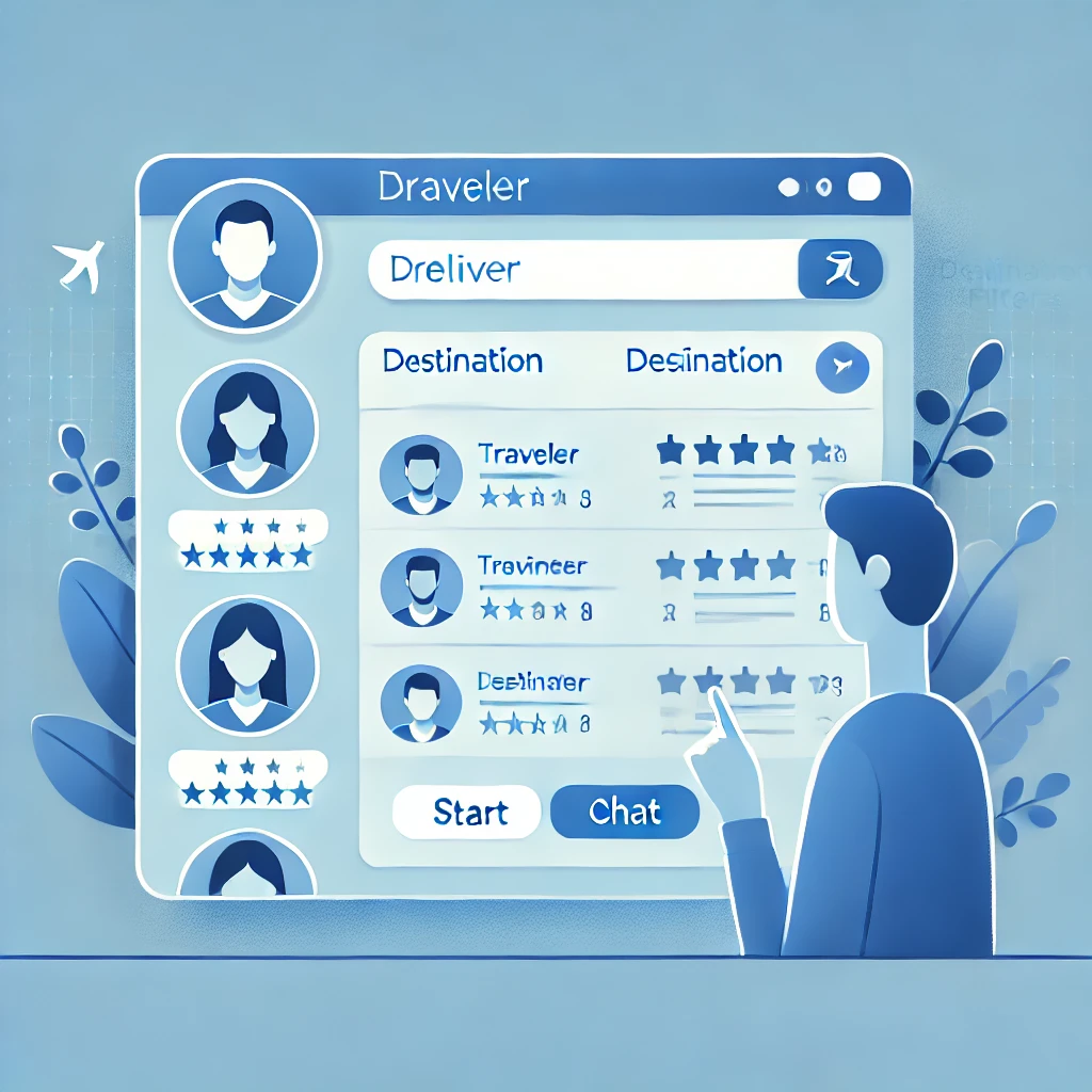 Parcourez les voyageurs disponibles, consultez leurs notes et échangez via le chat pour finaliser les détails.