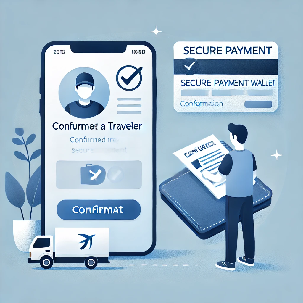 Validez le voyageur choisi, déposez les fonds sur la plateforme et recevez l’adresse de dépôt du colis.